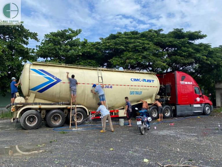 Bãi đậu xe 1 hecta, vệ sinh rửa xe tẩy bồn xi téc, cân xe 100 tấn