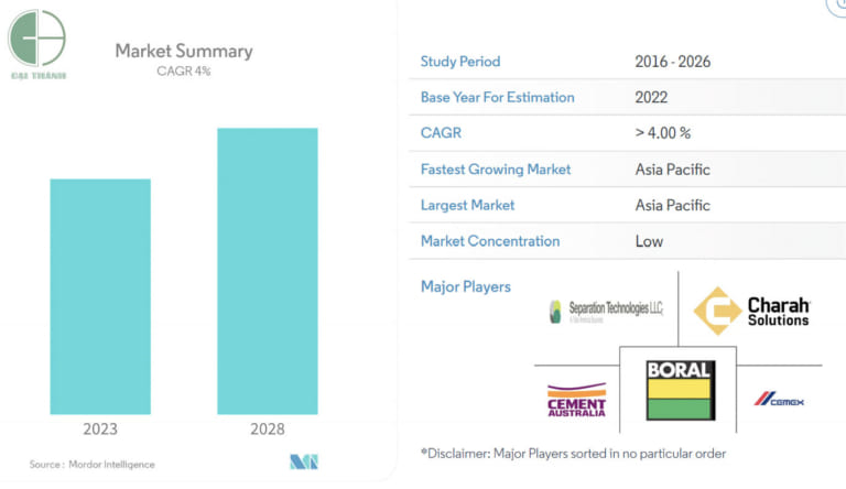Tổng quan thị trường tro bay thế giới Thị trường tro bay được ước tính đạt tốc độ CAGR (mức tăng trưởng kép hàng năm) trên 4%, trong giai đoạn